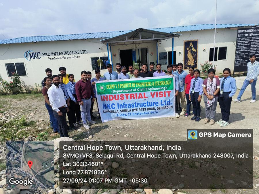 The Civil Engineering Department of Dewan V.S. Institute of Engineering & Technology (DVSIET) organized an enriching Industrial Visit to MKC Infrastructure Ltd., Dehradun. Students gained valuable insights into real-world construction practices, project management, and modern infrastructure development techniques. This visit provided a practical understanding of how classroom learning translates into large-scale engineering projects. Such industry exposure empowers our students to become future-ready civil engineers, equipped with both knowledge and experience.