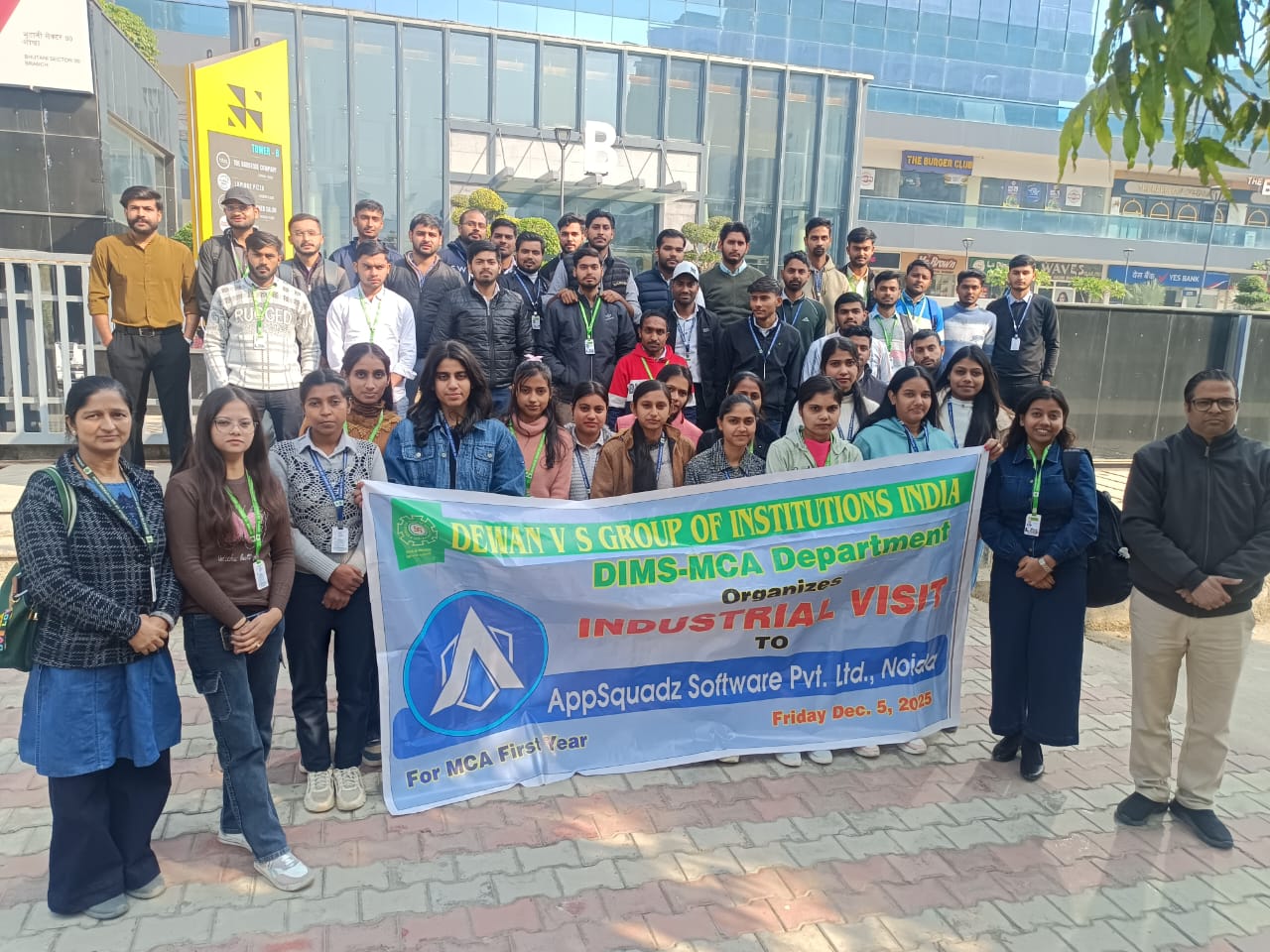 The MCA 1st-year students visited Appsquadz Noida, a leading software company as part of their Industrial Visit program. The students attended a session where they gained insights into the technical aspects of the company and the skills required by IT companies. They also got a glimpse of the working environment, which will help them prepare for their future endeavors. The visit was a valuable experience for the students, providing them with industry exposure and motivation.